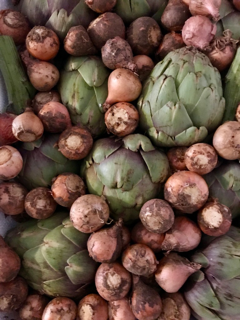 Nino is a similar cynic, the same sparkle in his gray-green eyes when they amuse themselves over someone else’s assumed silliness. As of this writing, it’s been about ten years since I’ve seen him and Zia Margherita and the cousins and grandchildren, though I sometimes think of them in Palo, all living together, young and old, rising in the summers to the man in the little truck yelling, “Cieliegie!” (Cherries!”) on repeat right below the bedroom window, and showering in the smallest shower ever created, and never using air conditioning, and eating daily in the finished basement, a step down from the street, instead of the main part of the house. I imagine them frying the uncured black olives with tomatoes, the bitter oily goodness contrasting with the sweet tomatoes. I think of the nearby produce market with the huge vats of cicoria and strange, delicious lampascioni onions (actually hyacinth bulbs) that allegedly are known (at least in this family) for causing gas. I never noticed, always drawn to the bitter vegetables, so good on their own with oil or on a sandwich. I remember also the parades in Palo, held for any number of bizarre occasions, when the townspeople join in and old ladies more wrinkle than person watch from tiny balconies with underwear hanging from them.